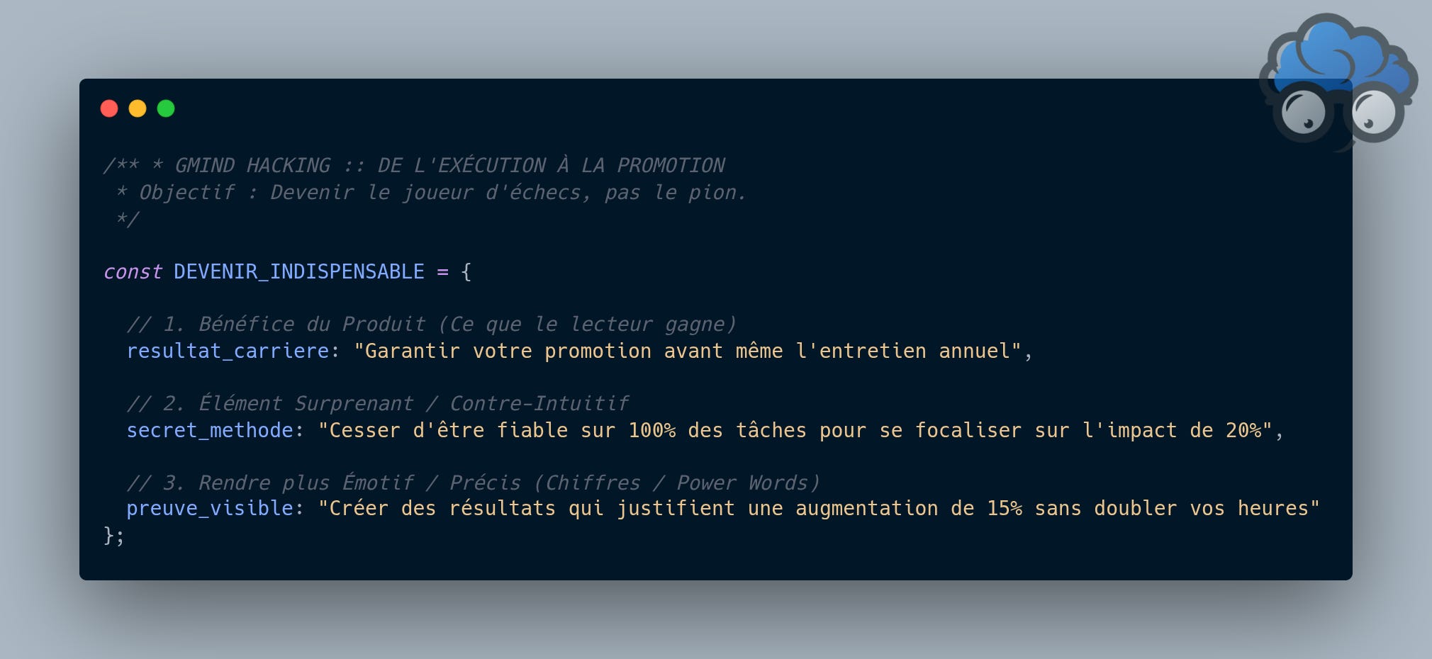 Mais le vrai hack est mental : l’indispensabilité est avant tout une question de Mindset. C’est le passage de la mentalité de la Tâche à celle de l’Architecte.