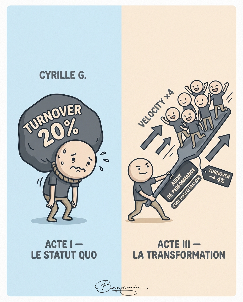 Le Cas Cyrille G. (La Preuve par les Chiffres) : Nous avons dĂ©cortiquĂ© le cas dâune TPE de 7 personnes qui Ă©tait au bord de lâimplosion (20% de turnover, dirigeant Ă 70h/semaine). On nâa pas changĂ© le business model. On a juste réécrit le code mental.